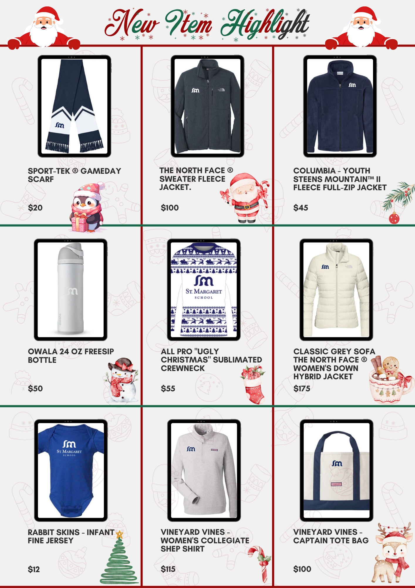This is a great way to get some early Christmas gifts, stock up on some cool SMS merch, and show off your SMS pride. The best part is that there is a sale just for Christmas! Items have been discounted so you can stock up on some early stocking stuffers (SMS slippers for the win!), Christmas presents (who doesn’t love an Ugly Sweater?), and cold-weather gear (like the new North Face jacket).
